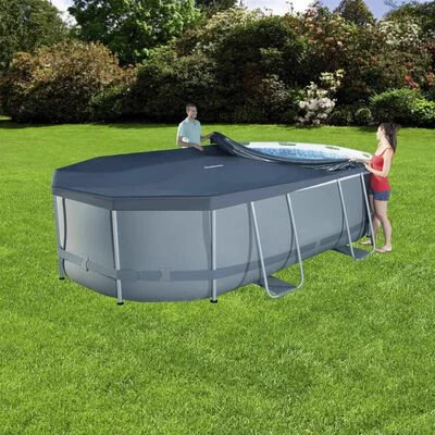 Empêchez les débris, les feuilles et les déchets de pénétrer dans votre piscine avec cette couverture de piscine Flowclear de la marque Bestway. La couverture de piscine hors terre peut empêcher la croissance d’algues et réduire les produits chimiques de remplacement coûteux lorsque la piscine n’est pas utilisée.