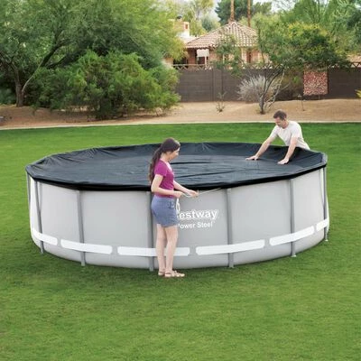 Empêchez les débris, les feuilles et les déchets de pénétrer dans votre piscine avec cette couverture de piscine Flowclear de la marque Bestway. La couverture de piscine hors terre peut empêcher la croissance d’algues et réduire les produits chimiques de remplacement coûteux lorsque la piscine n’est pas utilisée.