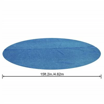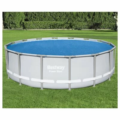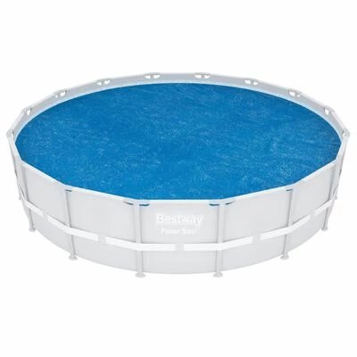 La couverture de piscine solaire Flowclear ronde de 462 cm de la marque Bestway permet de chauffer l’eau de la piscine de quelques degrés.
