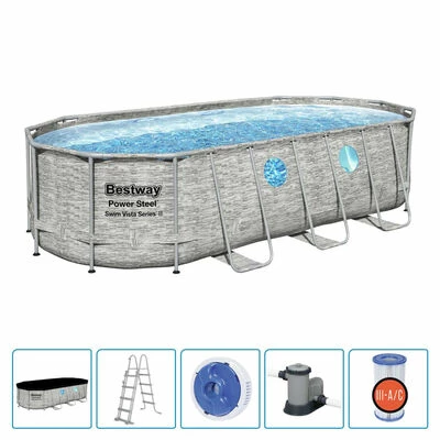 Avec cet ensemble de piscine Power Steel Swim Vista Series de la marque Bestway dans votre jardin ou votre arrière-cour, vous pouvez vous amuser avec votre famille et vos amis.
