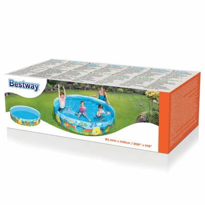 Cette piscine est robuste et durable. Elle est composée d’une paroi rigide en PVC robuste fixée de façon permanente à un sol en vinyle résistant et pouvant contenir jusqu’à 2 074 litres d’eau.