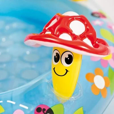 Cette piscine pour bébé en forme de champignon 57114NP d’Intex est idéale pour que les enfants puissent s’éclabousser et jouer à l’ombre.